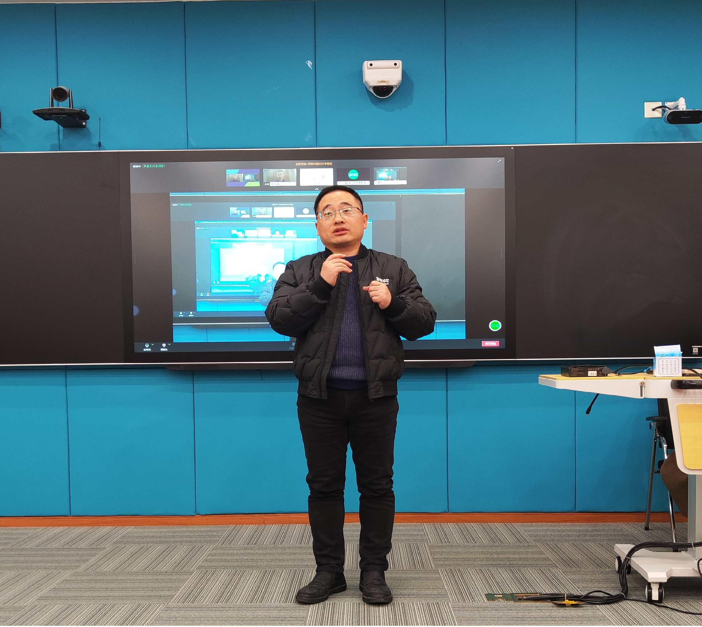 纪海波从“同上一门创新实践课”系列活动的背景、前期集体备课要点、教学模式、教学纪律、互动形式、未来授课计划等方面进行了介绍与说明。他认为,在前期精心集体备课的基础上,本次课程达到了预期教学目标,教学方法多样,教学效果良好,为后续课程的继续开展打下了良好基础,也为联盟内成员单位双创课程提质增效,切实发挥立德树人作用作出了良好示范。