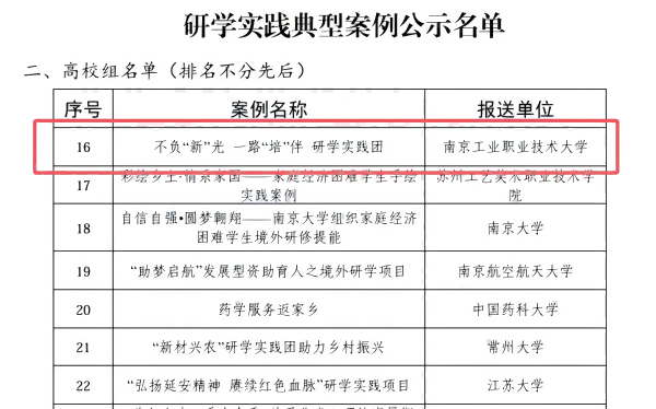 近日,江苏省教育厅组织开展的2024年“苏乡永助”资助育人主题活动评选结果揭晓。经学校遴选推荐、省教育厅组织专家评审,best365官网电气工程学院研学实践案例《不负“新”光,一路“培”伴研学实践团》获评研学实践典型案例。